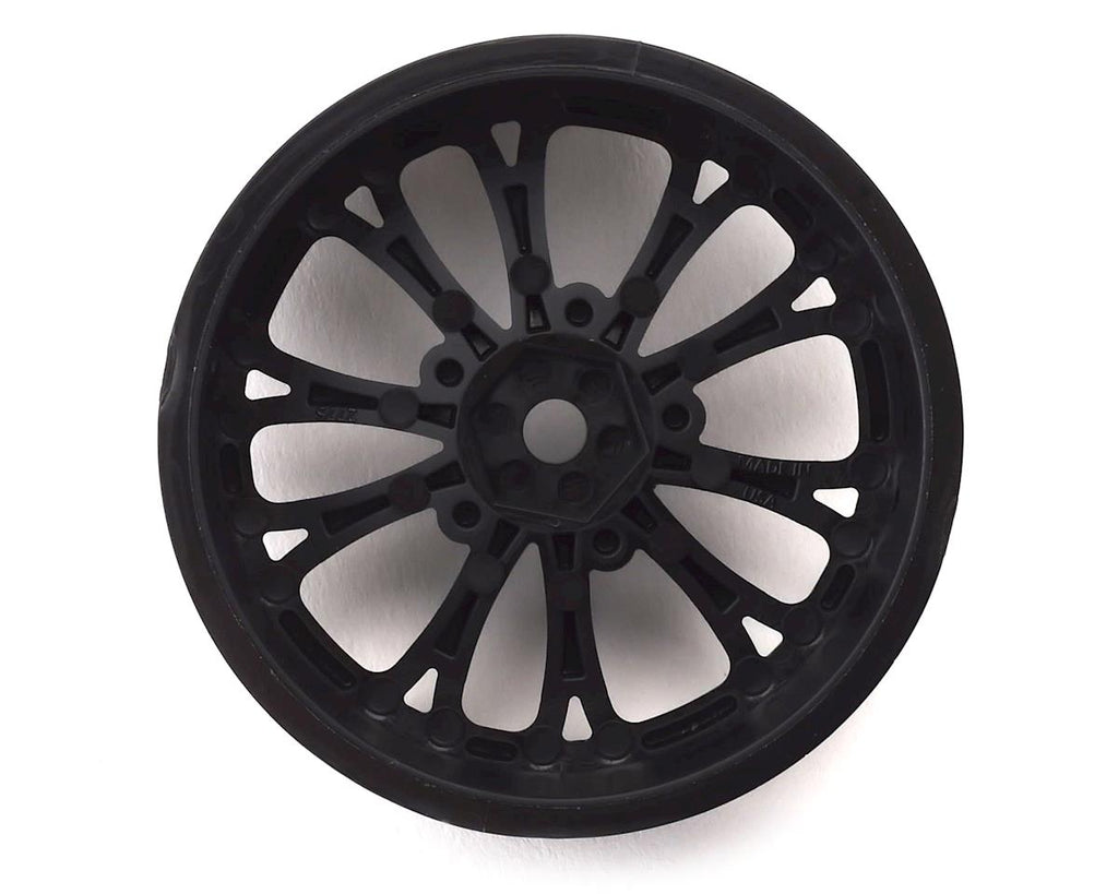 Pro-Line 2WD Pomona Drag Spec 2.2" Front Drag Racing Wheels are high-performance and perfectly styled drag wheels for no-prep SC drag racing. The Pomona wheels were specifically made for no-prep Drag racing and are a perfect fit with Pro-Line's Hoosier Drag 2.2" Front Tires! The Pomona wheels are strong and lightweight 12mm hex wheels making them the ideal choice for performance drag racing. The wheel spoke design mimics what you would find at the Pomona Drag Strip on any given race weekend and will complete the look of your build. The Pomona wheel offset is ideal for 2wd Slash trucks converted to no-prep Drag Racing cars, which has exploded in popularity. The Pomona Drag Spec wheel and every other wheel that Pro-Line makes is proudly Made in the USA.