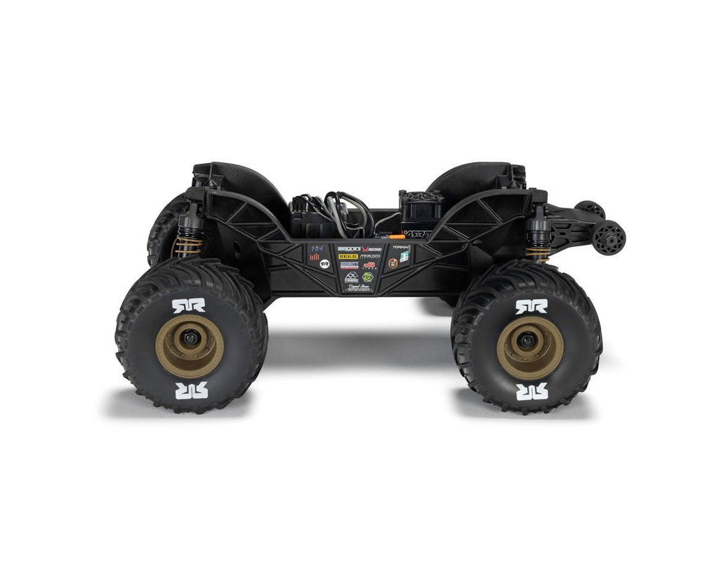 The Gorgon Grom is equipped with a full suite of Spektrum™ electronics that ensure responsive, reliable control. A Spektrum SLT2 two-channel 2.4GHz radio lets you throttle with precision, while the water-resistant Spektrum 25A Brushed ESC and receiver manage power delivery from the 380-size brushed motor. A Spektrum SX110 metal-geared servo handles steering with accuracy, making the truck agile and predictable on all surfaces. Together, these components provide a seamless driving experience right from the start.