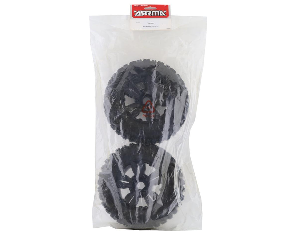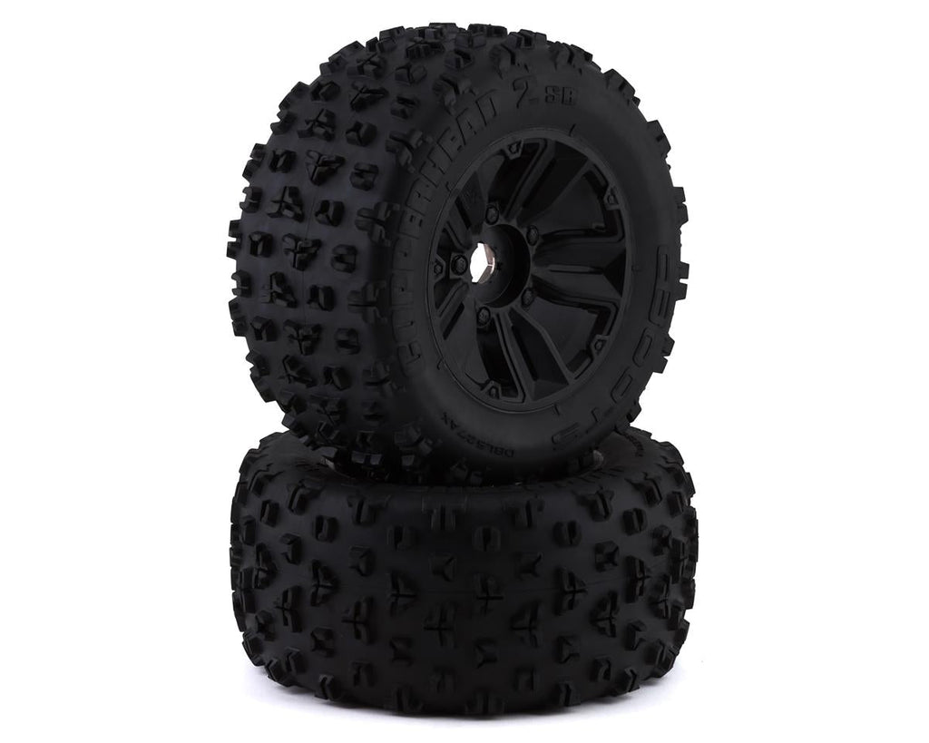 This is a replacement set of two ArrmaDboots "Copperhead2 SB MT" Pre-Mounted Tires, intended for use with 8s-BLX Kraton kits. These high-quality dBoots tires, mounted on ARRMA wheels, are direct replacements for your kit items.