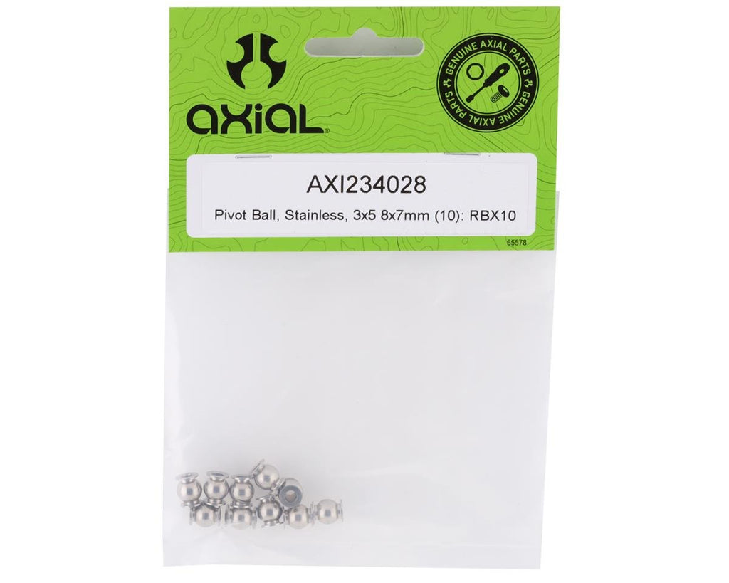 Axial 3x6.8x7 mm Stainless Steel Pivot Ball. This package contains ten replacement pivot balls designed for the RBX10 Ryft suspension and steering links.