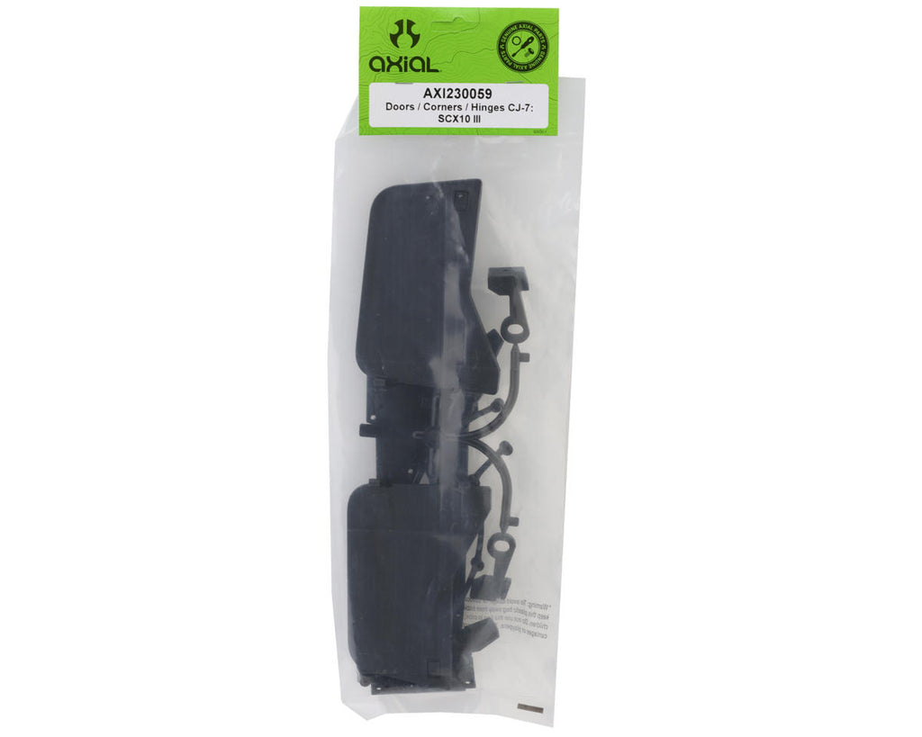 SCX10 III CJ-7 Doors and Hinges. This is a replacement door and hinge set intended for the Axial CJ-7. Package includes one door and hinge set.
