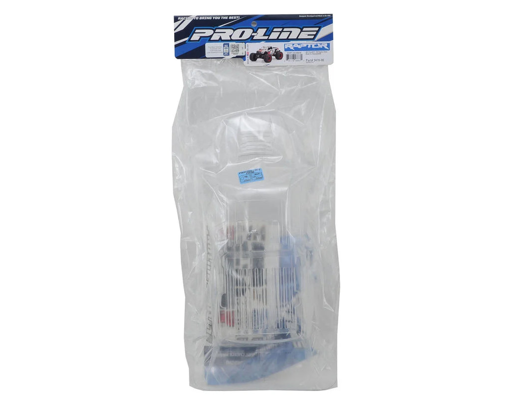 The Pro-Line 2017 Ford F-150 Raptor Body includes all of the details for a highly detailed yet functional replica of the 2017 Raptor. The 2017 Raptor has a bold and tough body style that is the most cutting edge look available. This body completely transforms your Stampede® Truck into a True Scale Lifted Truck. If you are a Raptor fan, then this is the body for you!