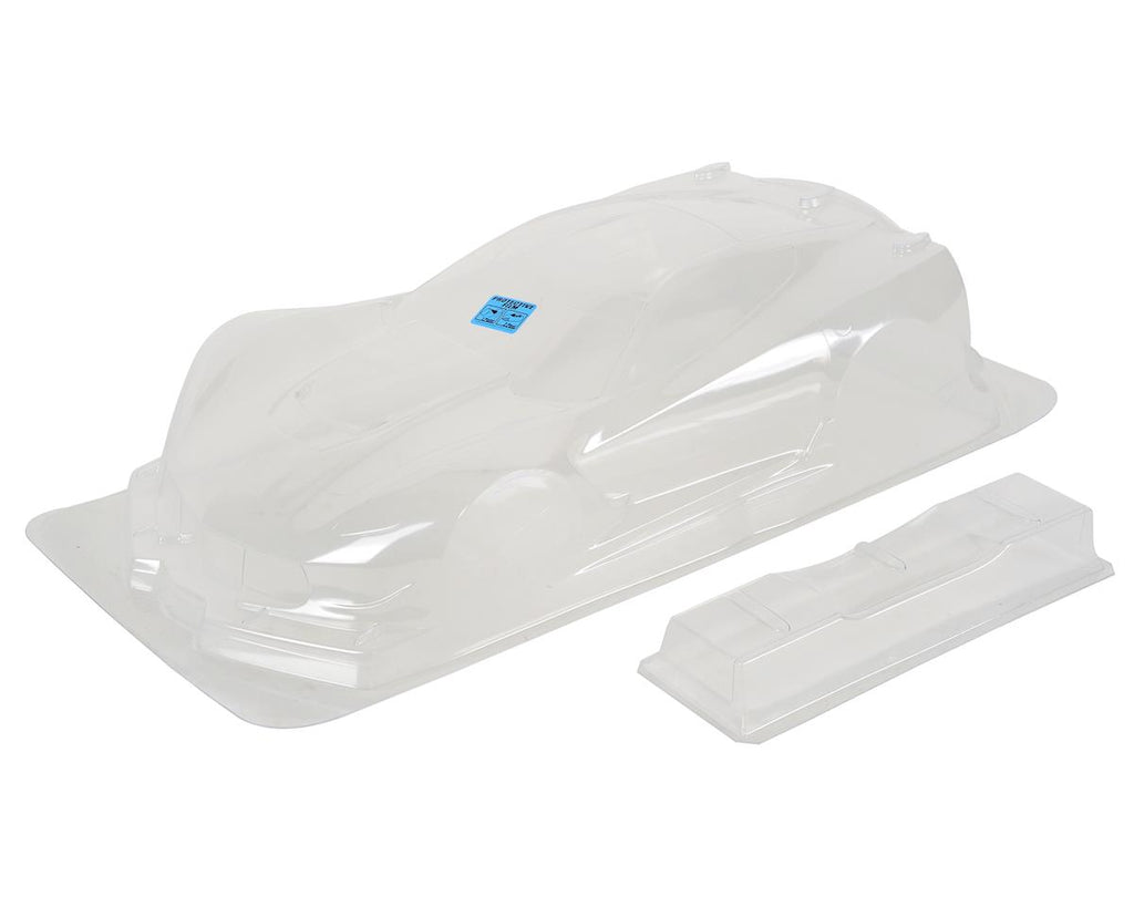 PROTOform brings Corvette Racing’s championship heritage to 1:8 GT Class racing with the officially-licensed Corvette C7.R race body. From the signature Corvette muscular stance and swept-back roofline, to the large front splitter and side vents, every detail of the 1:1 race car is captured to add scale realism to the world of 1:8 GT. The extensive decal sheet lets you deck out your C7.R with Corvette branded windshield headers, “Jake” skull hood logo, number plates, and USA flags. Included with the body is an add-on rear wing, secured with three oversized nylon screws and featuring 2 trim-lines and spill-plate sizes: a lower line for sanctioned racing, and an upper line for low-grip club racing.