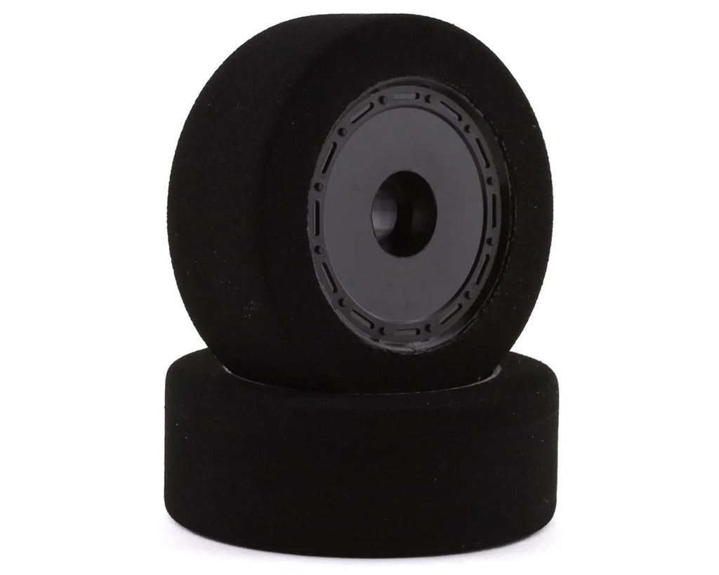 This is a set of two BSR Racing Custom Works Dirt Oval Front-Mounted Foam Tires for use with Custom Works 1/10-scale kits. These tires are available in multiple compounds for various applications.