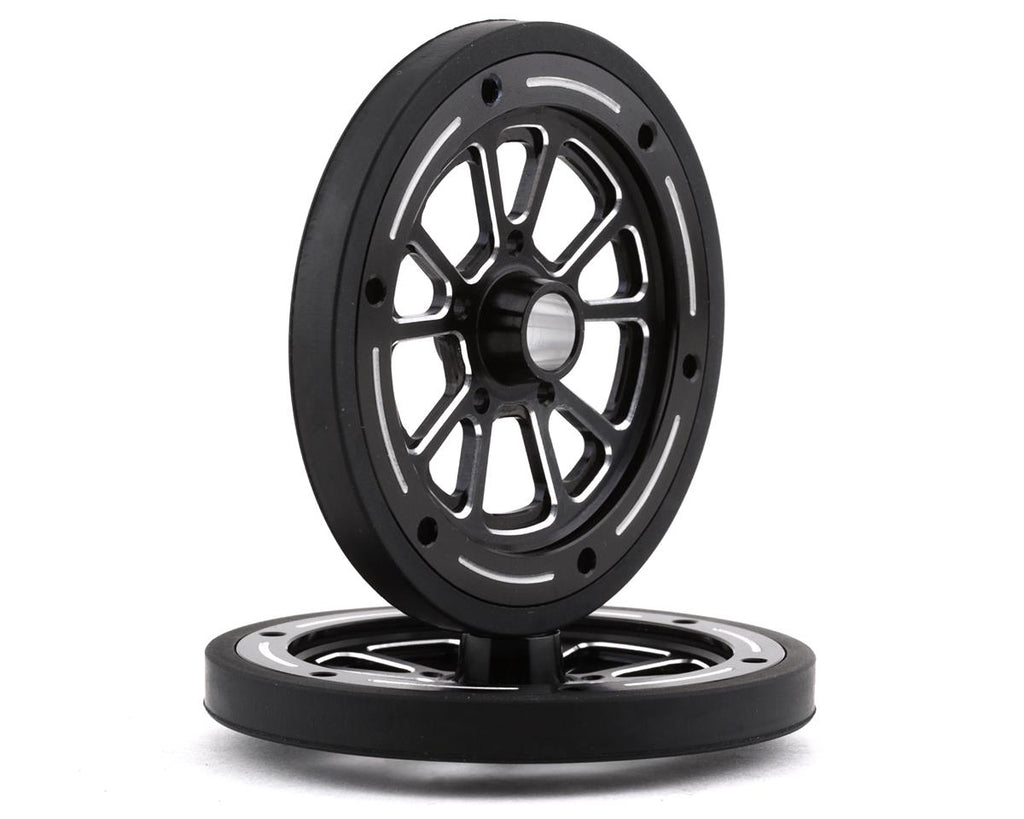 DragRace Concepts Ultra Lock Front Wheels are the first captured tire designs for 1/10th scale drag racing. DRC started with a custom designed 2.00" diameter front tire that inserts into the base of the wheel. The outer bead lock style ring has matching inserts that fit into the front tire to create a captured front tire that will withstand the quickest 1/10th scale drag set ups. The Bravo 10-spoke wheel design is CNC machined aluminum with bright anodizing and two tone relief milling to add a touch of flash.