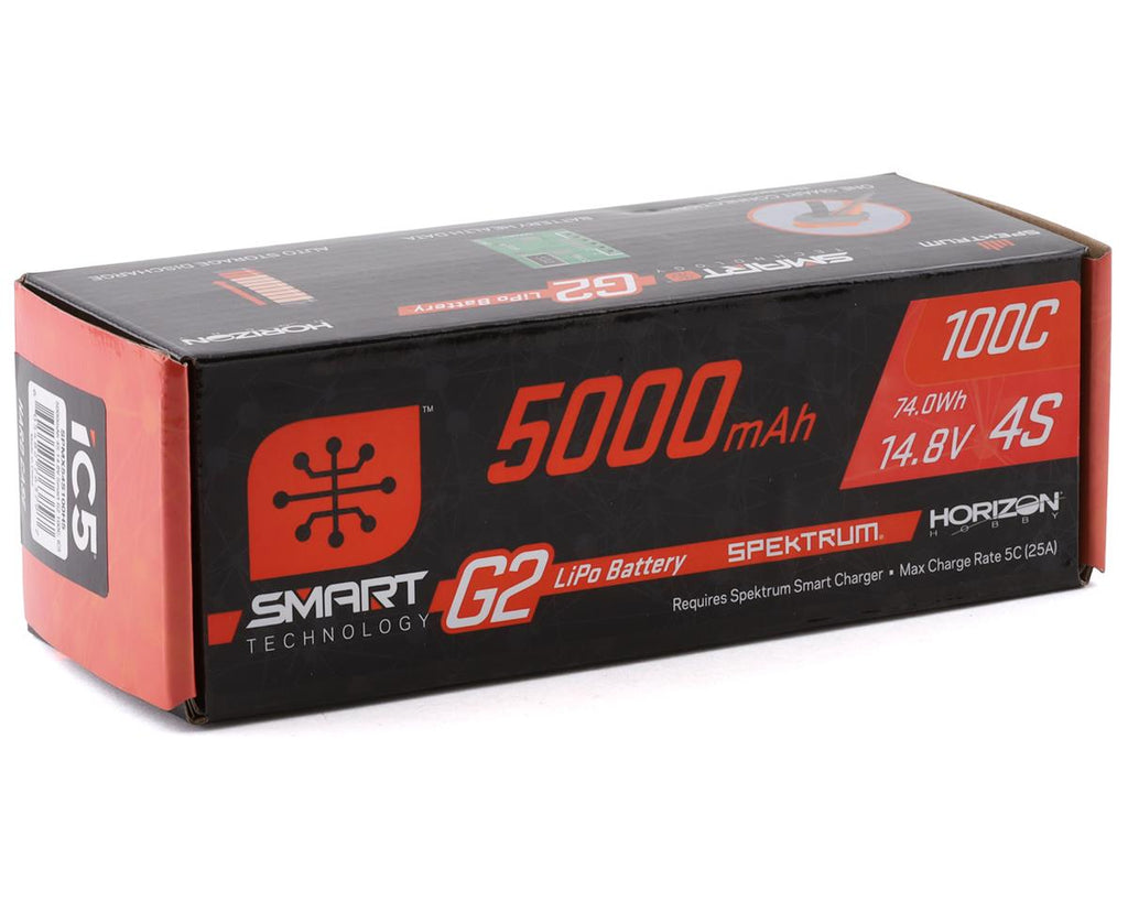The Spektrum RC 4S Smart G2 LiPo 100c Battery Pack with IC5 Connector provides pilots and drivers with an array of Smart benefits; Not only are charging parameters and performance data stored and uploaded automatically to Smart chargers, but no balance lead is needed — just one easy IC connection.