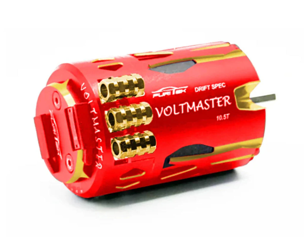 The Furitek Voltmaster 10.5T Sensored Brushless Drift Motor is engineered for precision, power, and efficiency, making it the ultimate choice for serious drifters. Designed with an aerodynamic cooling system, high-efficiency stator, and dual Hall sensor ports, this motor delivers instant throttle response and maximum drift stability. The lightweight yet durable 7075-T6 aluminum alloy housing ensures superior heat dissipation, even under extreme conditions. Finished in an outstanding anodized color scheme, the Voltmaster doesn't just perform—it stands out on the track.