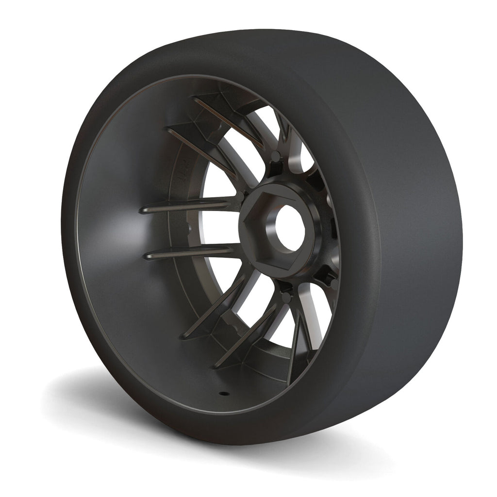 Pro-Line Infraction 6S Goodyear NASCAR Car Belted Pre-mounted Tires. The Goodyear Eagle NASCAR Cup Series tire is BELTED to handle extreme power and high speeds with ease. No tire ballooning here! These slick tires and Cup Series wheels give your Infraction 6S a super scale look with yellow printed sidewall lettering and gunmetal wheels, just like the Next-Gen Cup cars use! Pair these wheels and tires with the NASCAR Cup Series Ford Mustang body (PRM158700) to completely transform your ride into a Stock Car racing machine!