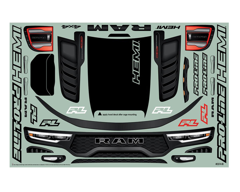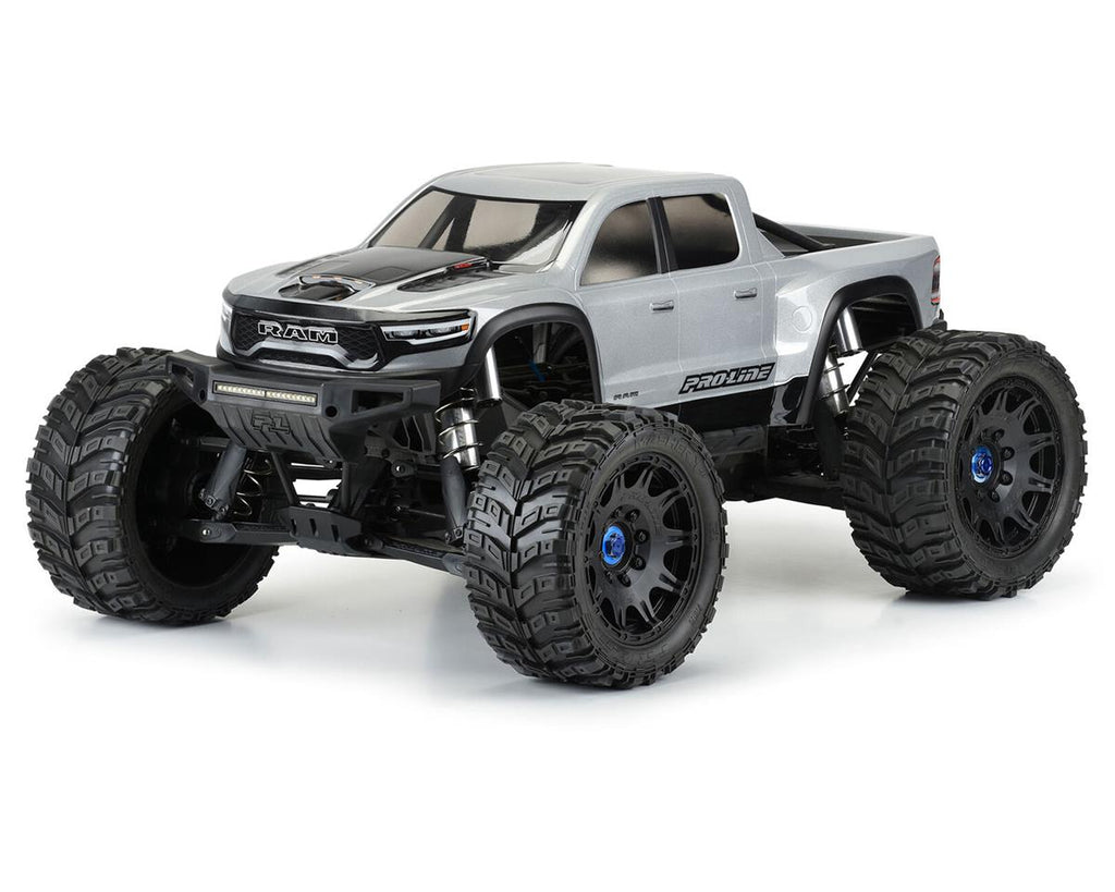 The Pro-Line Ram 1500 Hemi Pre-Cut Monster Truck Body is a great clear option part intended for the Traxxas X-MAXX. Pro-Line has included all of the aggressive scale detail into the body shell and sticker sheet for a highly detailed replica. This body comes pre-cut for ease of use and mounting to the Traxxas body mount system. Being clear this body is ready to receive your custom paint scheme. Update your X-MAXX with this highly detailed Ram 1500 body.