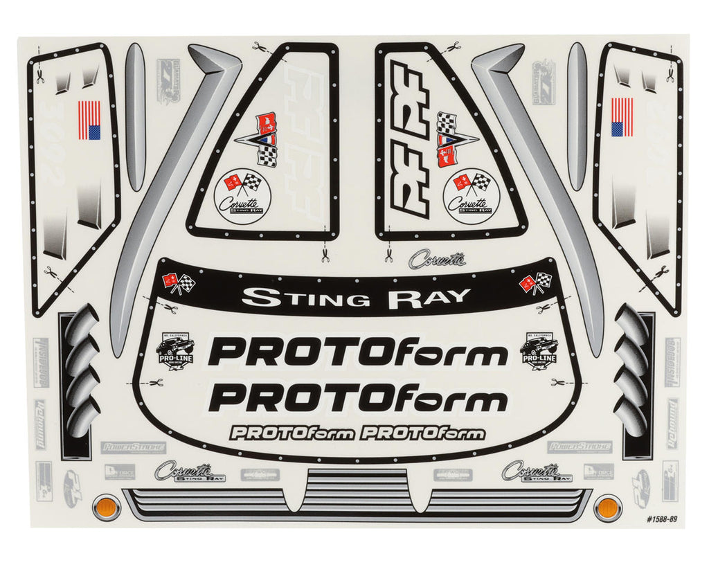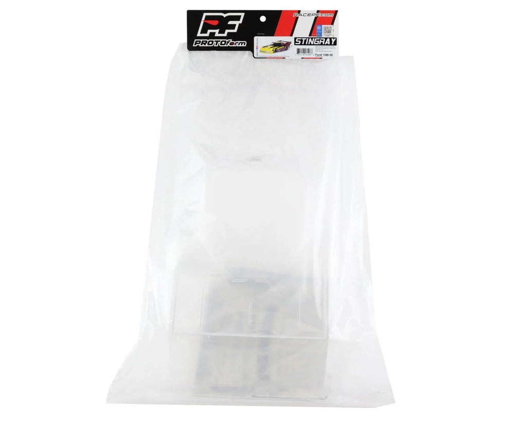 The Protoform 1963 Chevrolet Corvette Stingray Pro Mod Drag Car Body is designed to give you the looks and feel of one of the most iconic drag cars of yesteryear. This officially licensed body combines scale realism with a low-LCG aerodynamic upgrade to your 13.2" wheelbase No Prep Drag Car. Protoform has combined the signature "split-window", enlarged rear haunches and low-slung nose with some stretched, pro-mod drag racing proportions to transform your no-prep car into a scale-1/4-mile beast. The exaggerated ribs and front fenders create an extra stiff hood area to avoid folding down at high speeds. Due to the overall slammed design of the hood, this body will only fit the latest high-end No Prep racing models with low-profile front shock towers.