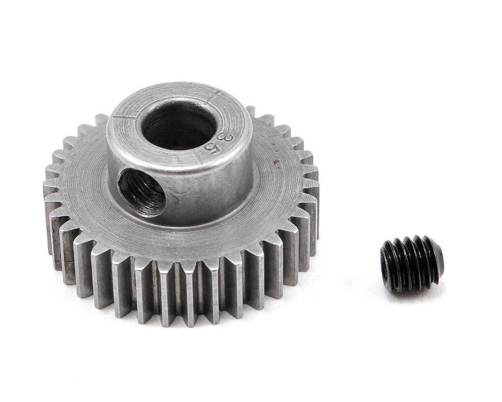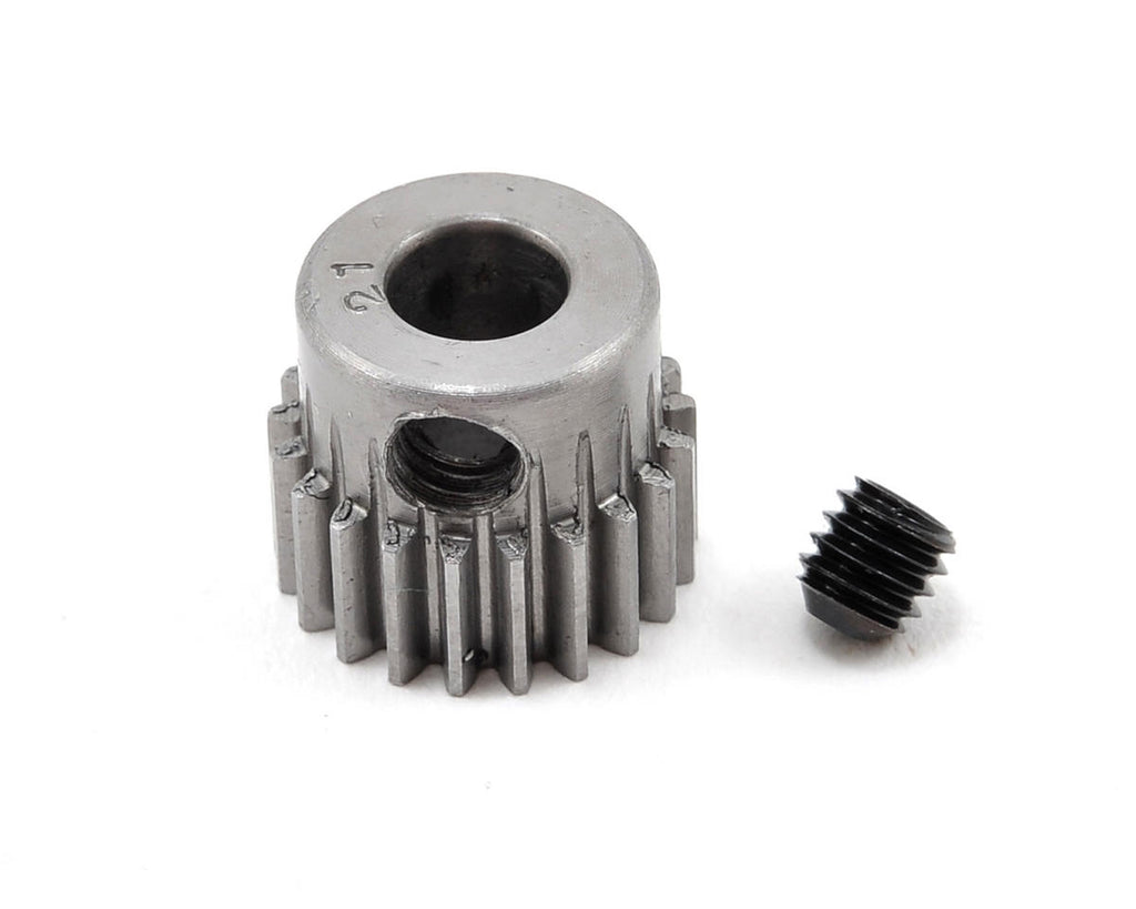Robinson Racing 5mm Bore, 48 Pitch Machined Pinion Gears can be used on any car that uses a 48 pitch spur, when using a motor that has a 5mm rotor shaft. Robinson Racing pinions are precision machined from high quality steel for durability, and have the number of teeth stamped on the side for easy identification. Choose from multiple options to fine tune the gear ratio of your vehicle. Package includes one pinion gear and one 4mm set screw.