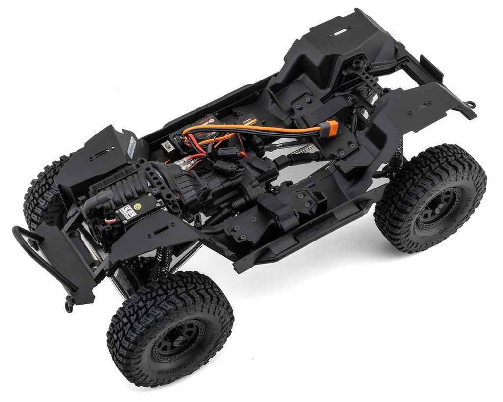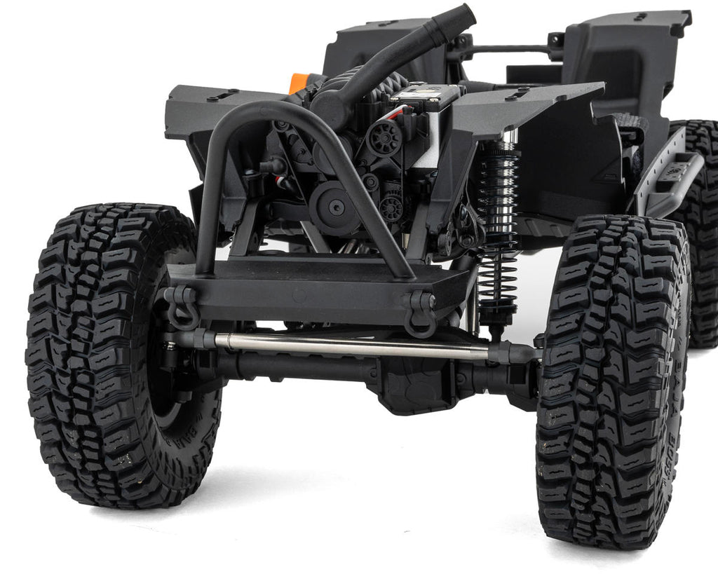 The Axial SCX10 III Jeep CJ-7 is a remarkable R/C rock crawler that pays homage to the iconic civilian Jeep introduced in 1976. Boasting an officially licensed Jeep CJ-7 body made of durable polycarbonate, this crawler comes complete with Gen-Right bumpers, body armor, and a fully detailed interior, including an opening center console. The doors of the scale body are functional, allowing for an immersive experience where enthusiasts can open or even remove them. The attention to detail extends to additional scale features, such as a functional center console, removable coffee tumbler and soda can, transfer case twin stick shifters, automatic transmission shifter, bucket seats with optional seatbelt harness slots, folding side view mirrors, and more. This level of scale realism sets the SCX10 III Jeep CJ-7 apart, making it a must-have for collectors and rock crawling enthusiasts.