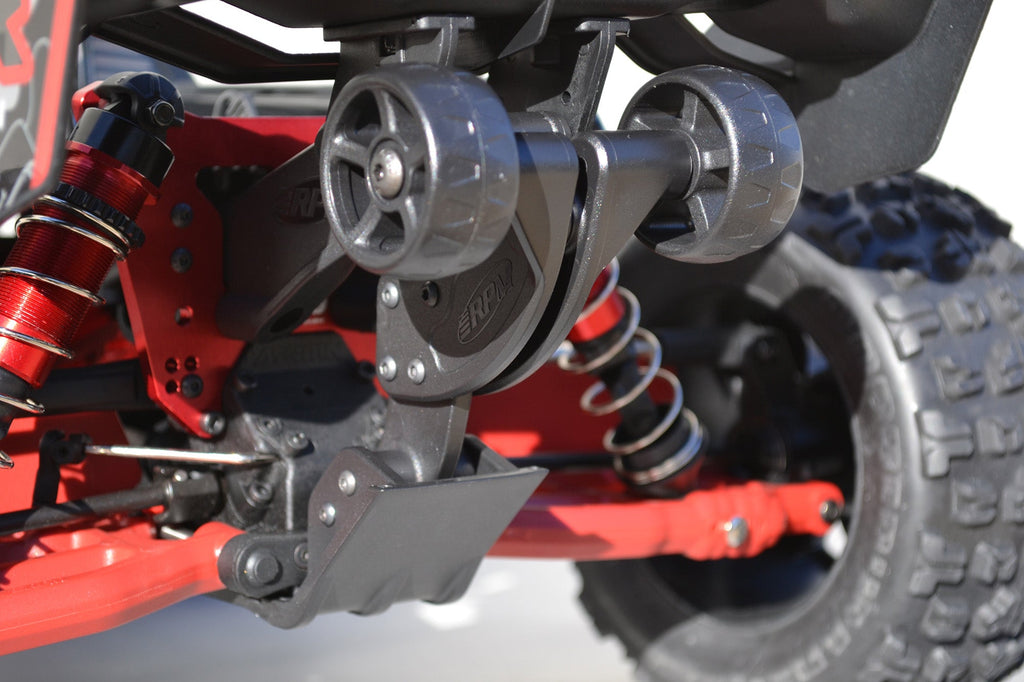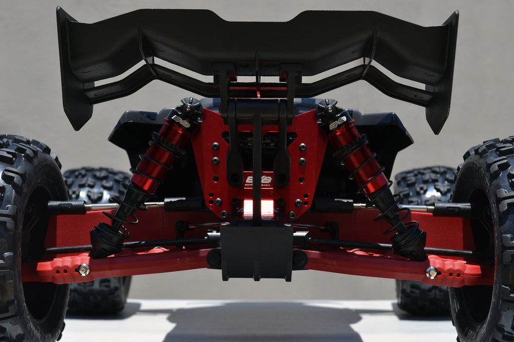 - Included Rear Skid Plate: In order to make the toughest wing mounts, we had to devise a new structure to create a triangulated base of support. Our new rear skid plate incorporates mounting points for a vertical brace. The brace spans the distance between the wing mounts and the skid plate, creating an incredibly tough system. As an added bonus, the skid plate helps protect the rear end of that expensive aluminum chassis.