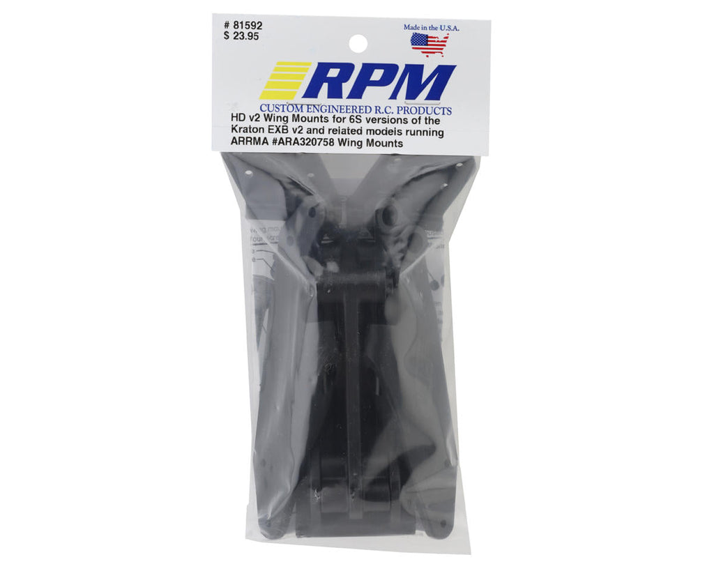 Version Compatibility: The RPM HD v2 Wing Mounts fit the EXB v2 edition of the ARRMA 6S Kraton and any other vehicle running ARRMA #ARA320758 Wing Mounts exclusively. It is not compatible with v5 or older editions running ARRMA #320347, #320194 or any other wing mounts. Please see our original #81802 HD Wing Mount System for these vehicles.