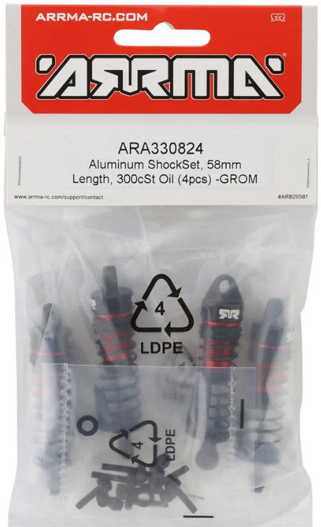 Arrma 58mm Aluminum Shock Set. These are an optional set of aluminum shocks intended for the Mojave, Typhon, and Granite Grom.