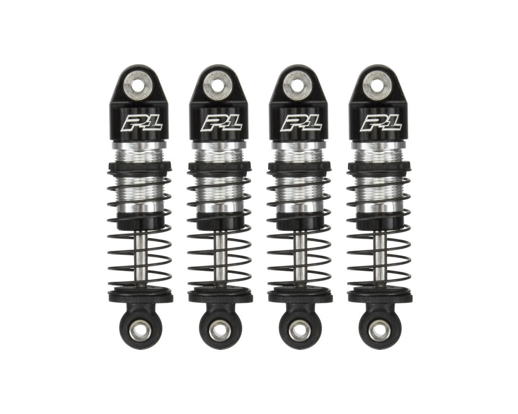 This a set of Big Bore Scaler Shocks, designed specifically for the Axial® SCX24™. Take your SCX24™ to the next level of performance in Pro-Line Style! Just like our best-selling 1/10 version, these miniature Big Bore Scaler Shocks feature CNC machined Aluminum Shock Caps, Threaded Bodies, Bottom Caps, and Polished Steel Shock Shafts for added style and durability over the stock shocks. The large 5mm bore shock bodies allow the shocks to function as true performance Big Bore Shocks due to the larger oil volume. A double O-ring seal on the main shaft eliminates leaks and provides a smooth, low-friction shock action.