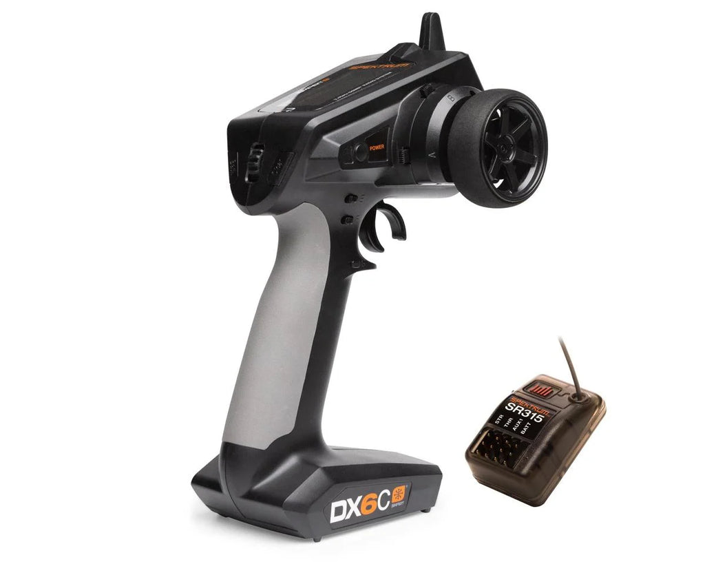 Spektrum RC DX6C 6-Channel DSMR Surface Radio with SR315 Receiver. The DX6C is the perfect solution for bashers, boaters and scalers who want a staggering list of advanced features in a user-friendly platform with virtually unlimited possibilities. Built around frequency agile, DSMR 2.4GHz smart technology, you can use the DX6C in any type of surface application, including boats! Features a Six fully proportional channels with user-friendly steering and throttle mixes, intuitive SimpleScroll programming interface, Spektrum Smart technology ready, capability of running and saving up to twenty models, a backlit LCD screen and a back button that makes navigating the interface even more intuitive! All these upgrades and features, make the DX6C is the ultimate upgrade transmitter for RTR crawlers, bashers and other surface applications in need of an easy-to-use, features, and technology-loaded smart transmitter!