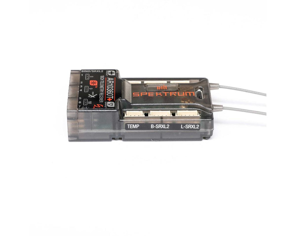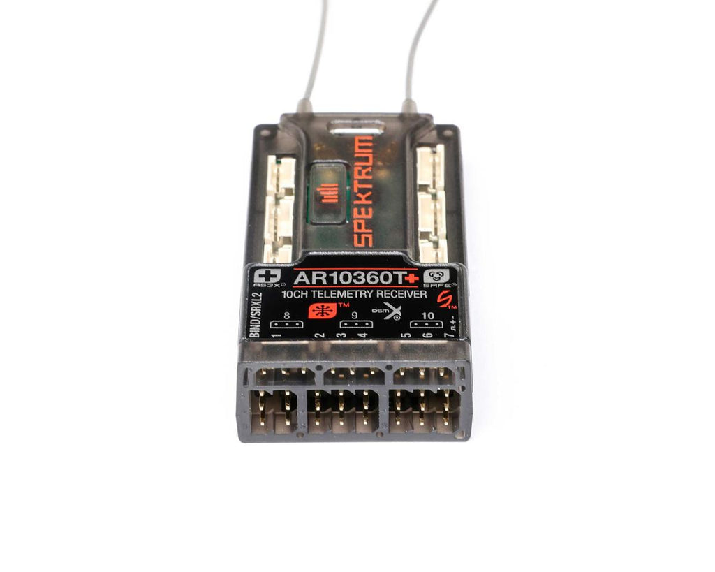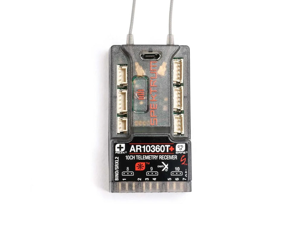 This is the AR10360T+ 10-Channel DSMX Aircraft Telemetry Receiver with AS3X+ and SAFE from Spektrum RC. Designed to enhance flight performance, this compact receiver features built-in AS3X+ and SAFE stabilization technologies, providing precise control in any environment. It offers full-range telemetry capabilities, advanced failsafe options, and seamless integration with Spektrum Smart systems, making it ideal for park flyers, sport models, and large-scale aircraft.Features: