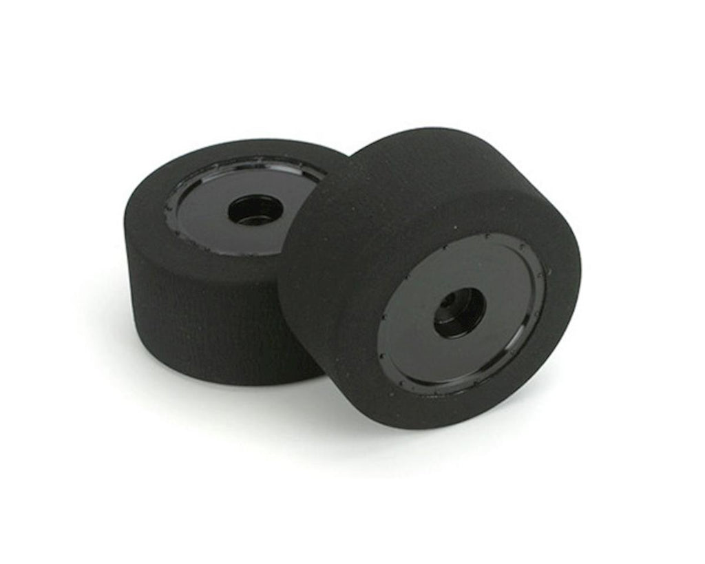 This is a set of two purple compound pre-mounted Custom Works dirt oval rear foam tires.