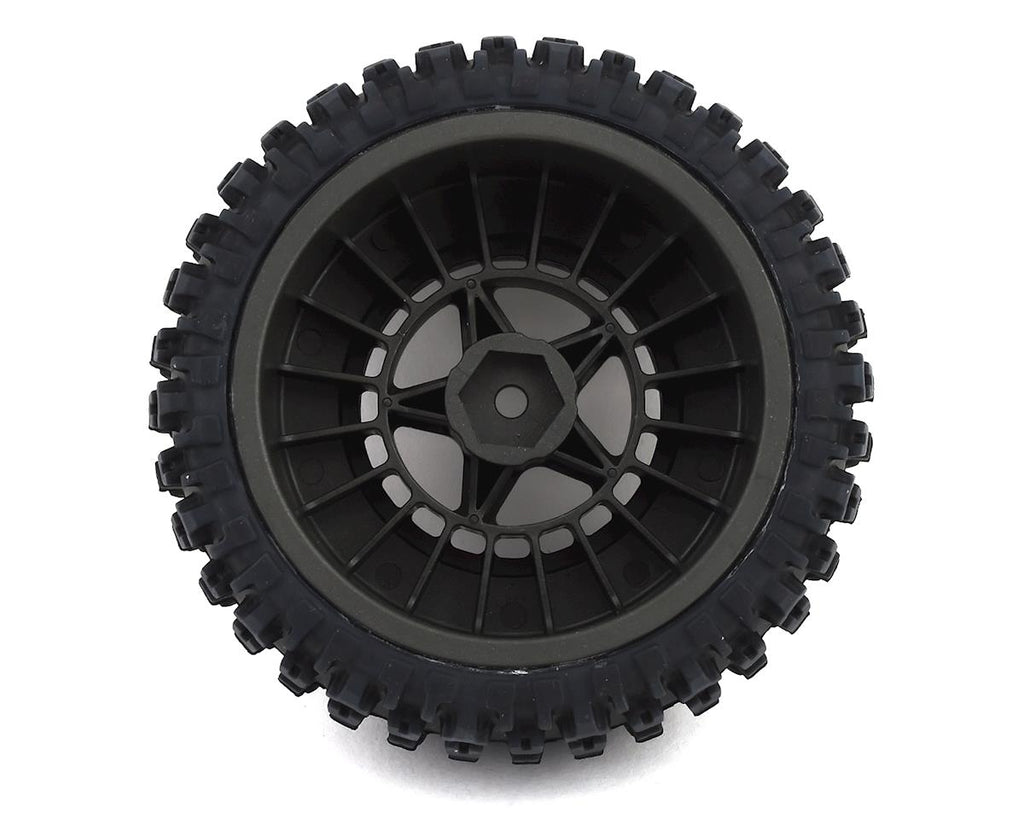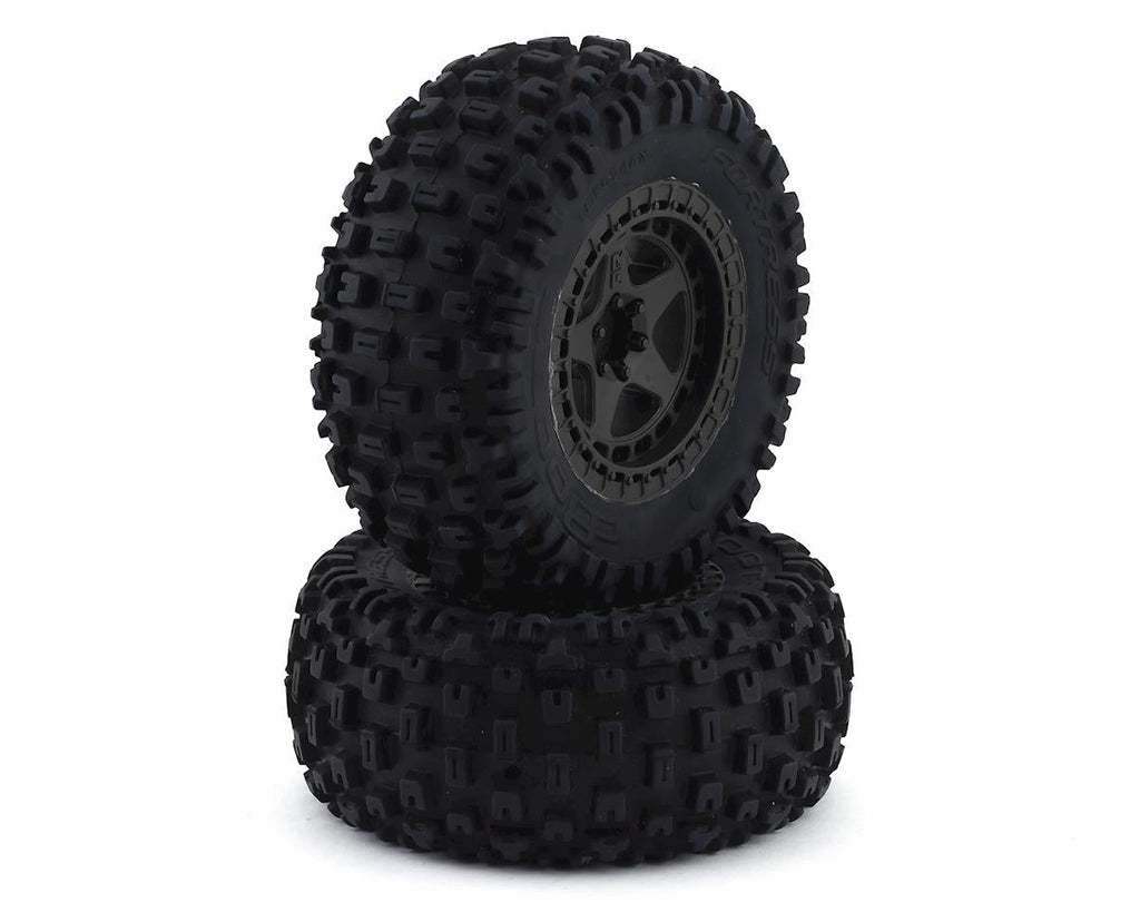 This is an optional set of two Arrma Dboots 'Fortress SC' Tire Set on Glued Gun Metal Wheels with a 14mm Hex. Intended for use with the Senton 4X4 V3 3S BLX Brushless Short Course Truck.
