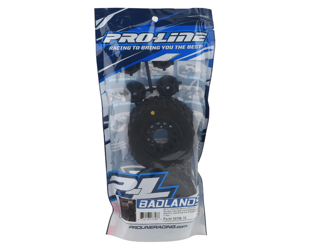 The Badlands MX SC tire uses the latest in motocross tread technology with huge, long-lasting lugs giving it the style and performance that have won over bashers across the globe. The oversized grass and dirt shredding lugs offer you the ultimate in performance under all-terrain type conditions. Compared to the previous Pro-Line Badlands tires, you can expect even better traction, improved wear resistance, and enhanced style! Made from Pro-Line’s legendary soft yet durable M2 compound, the Badlands tire is poised for battle and ready to take your Short Course Truck to the next level of bashing heaven.