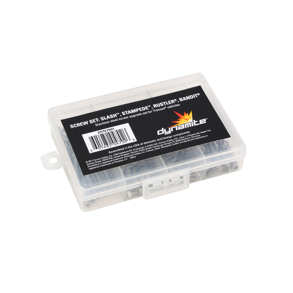 The Dynamite® brand is proud to offer stainless steel screw upgrade sets for the Traxxas® Slash™, Stampede®, Rustler® and Bandit™ vehicles. These stainless steel screws are far superior to the stock screws included. Our kits are made with the best stainless steel money can buy. No more bent, rusted or corroded screws or stripped heads again.