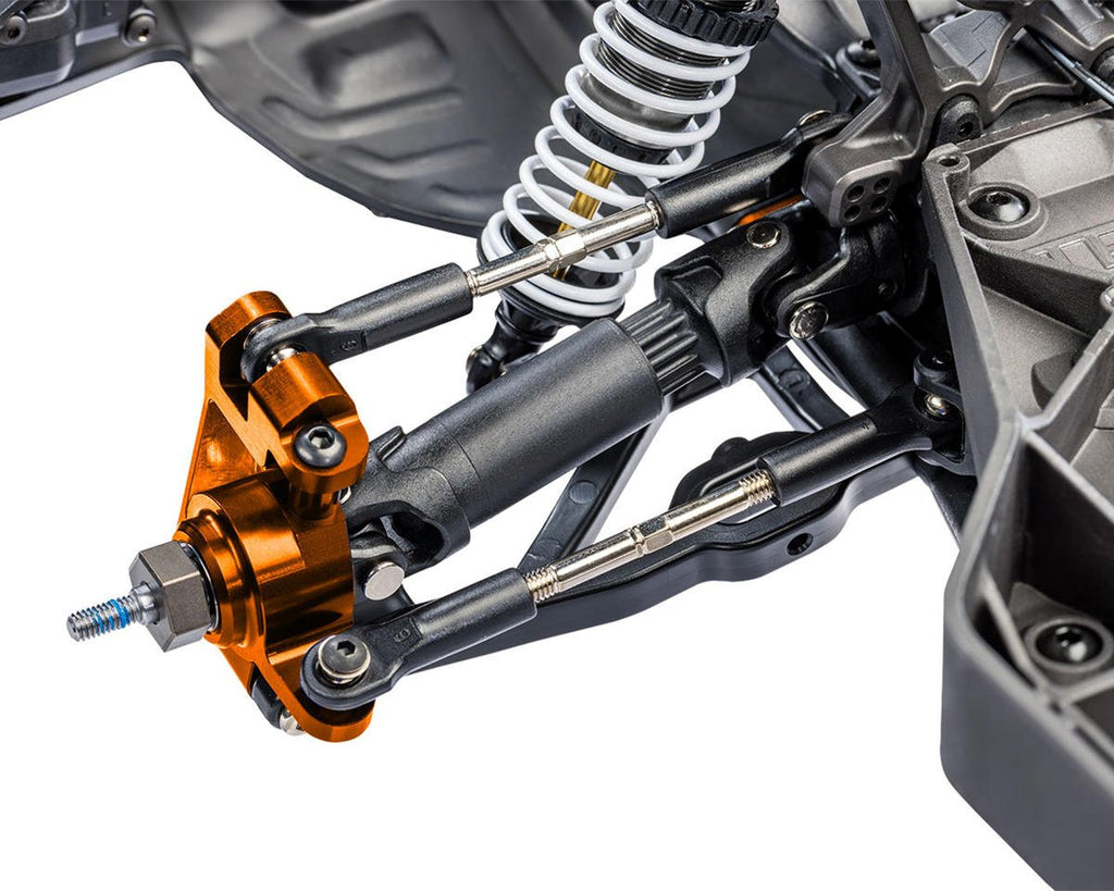 With aluminum GTR shocks, TiN-coated shafts, and adjustable spring collars, the Raptor R 4X4 Ultimate absorbs big hits while maintaining plush handling. Color-matched aluminum C-hubs, steering blocks, and rear carriers ensure strength and style, while heavy-duty arms and adjustable 4mm steel links offer track-tuned handling.