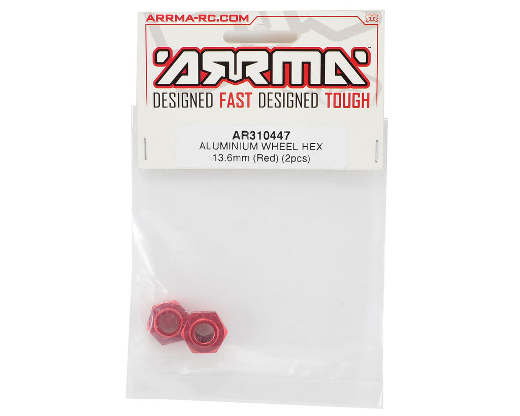 This is a pack of two optional Arrma 13.6mm Aluminum Wheel Hexes. These 13.6mm Aluminum Wheel Hexes provide a strong and secure wheel fitting for your ARRMA vehicle.