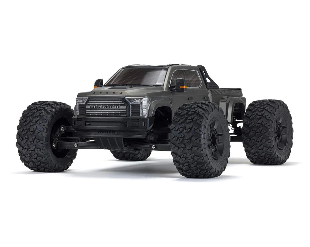 Assembled, finished, and complete with high-quality Spektrum SLT3 radio system, the Arrma Big Rock 6S BLX RTR requires only your choice of the recommended LiPo batteries and charger before delivering a big brushless performance with incomparable scale style.