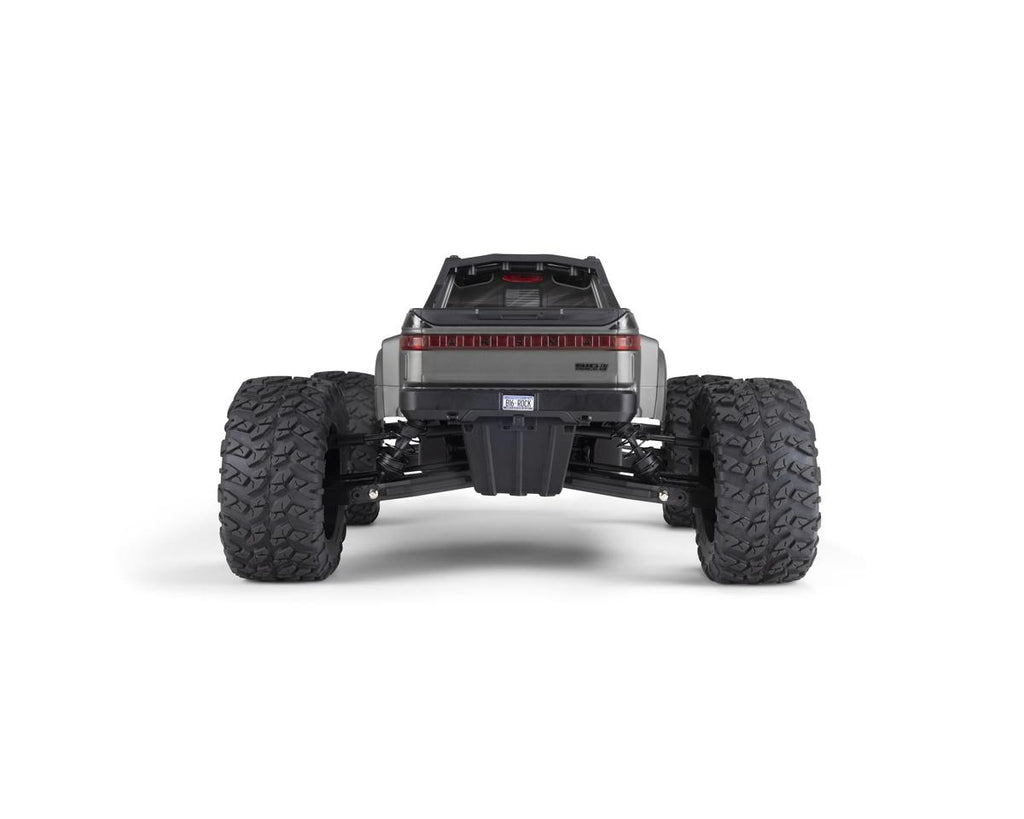 Built on the proven 6S BLX platform and supersized to 1/7 scale, the ready-to-run Big Rock 6S BLX 4x4 blasts like only a large-scale Arrma RC monster truck can, especially when amped up with Spektrum brushless power and topped with an eye-catching crew cab body. Featuring loads of realistic scale details and "stealth" black-anodized aluminum parts, the Arrma Big Rock 6S BLX is big, fierce, fast, and tough.