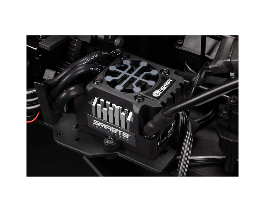 Its 6S LiPo capable brushless power system includes a highly efficient Spektrum Firma 2050kV brushless motor that's perfectly matched to a Spektrum Firma 150A Smart V2 waterproof ESC with IC5 connectors. The ESC has been updated to deliver more punch and an improved driving feel. Install the supplied, optional speed pinion, and the Big Rock 6S BLX can reach incredible 65+ mph speeds in optimum driving conditions.