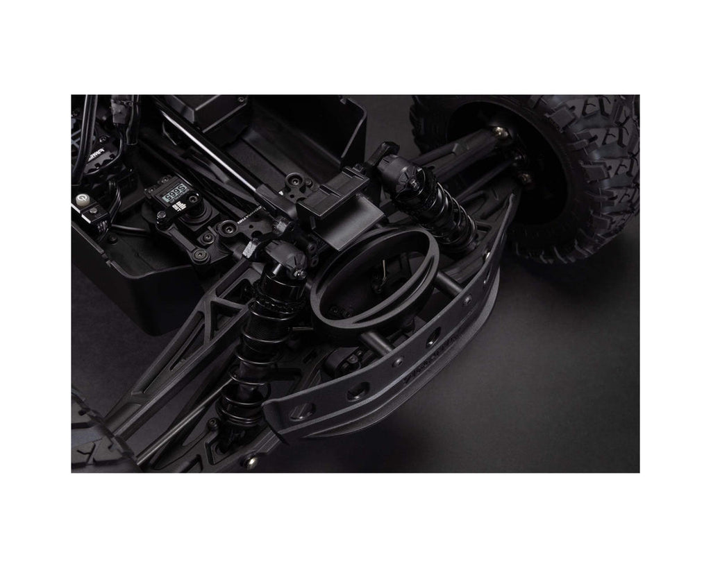 From the reinforced, black-anodized 6061-T6 aluminum chassis to the independent suspension with adjustable, aluminum-bodied, oil-filled shocks, the characteristically durable Arrma design lets you fearlessly tackle all terrain and all conditions. The metal drivetrain, steel driveshafts, and metal-geared Spektrum S665 digital steering servo all work together to bring out the full bashing potential of 6S brushless power.