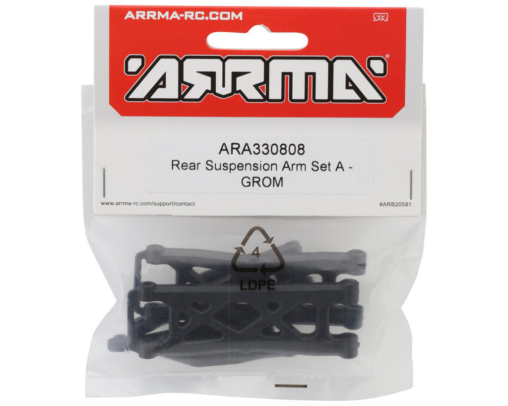 Arrma Granite Grom Rear Suspension Arm Set "A". This is intended to replace stock kit components on your Arrma vehicle.