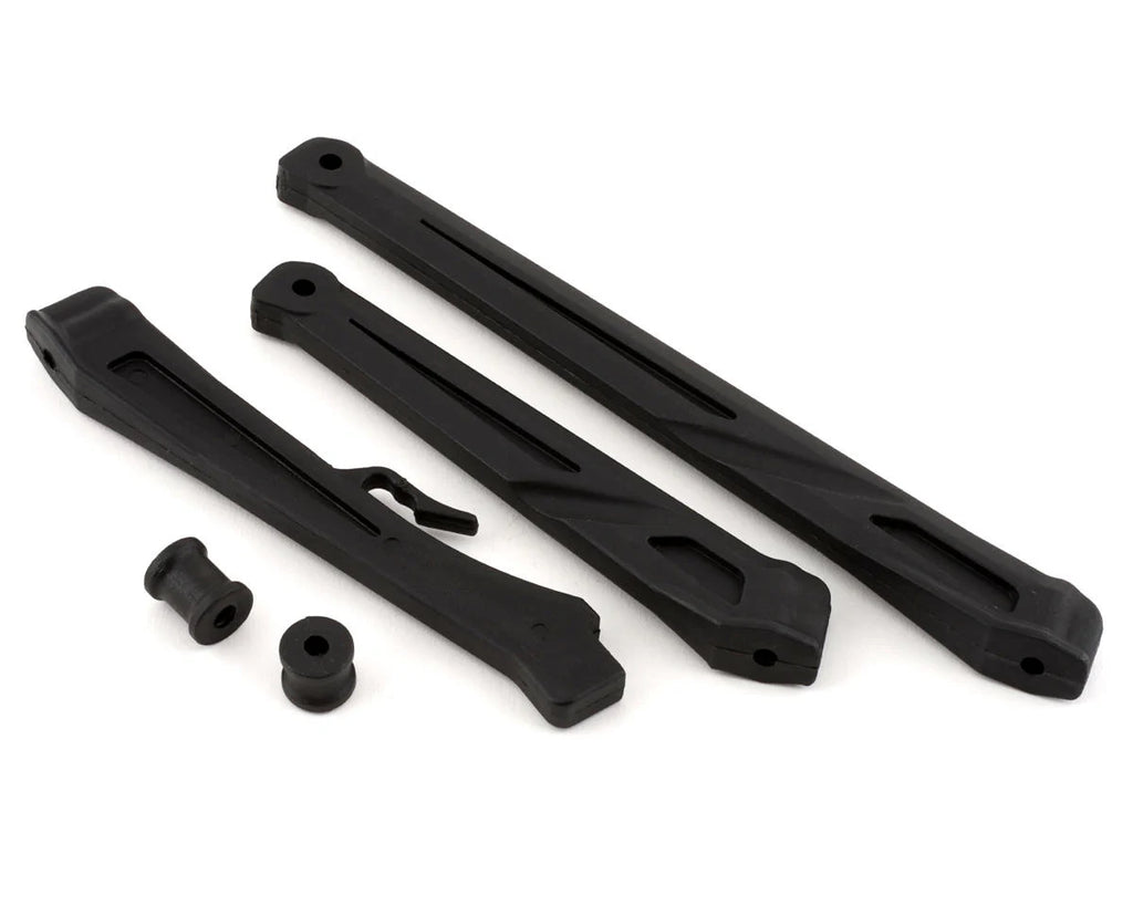 Arrma HD Chassis Brace Set. This is a replacement chassis brace set used on various Arrma vehicles such as the Kraton, Notorious, Outcast and Typhon 6S BLX models. Constructed from high strength composite materials these braces provide excellent durability and stiffness.