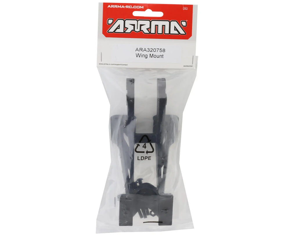 This is the Kraton 6S Wing Mount from Arrma®. Designed as a reliable replacement for your original wing mount, this part is built from tough composite material to withstand various conditions. It features precision mounting holes for easy installation and servicing, making it a practical choice for maintaining your Kraton 6S vehicle.