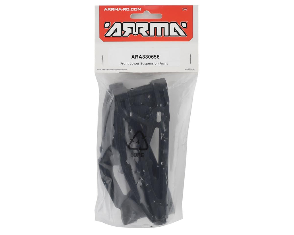 Arrma Kraton EXB Front Lower Suspension Arms, are a replacement part for the Kraton EXB, but can be used as an optional upgrade for Outcast, Talion, Notorious and Kraton 6S BLX kits when combined with optional parts. These Heavy-Duty Front Lower Suspension Arms have been designed Arrma tough so you can blast with confidence.
