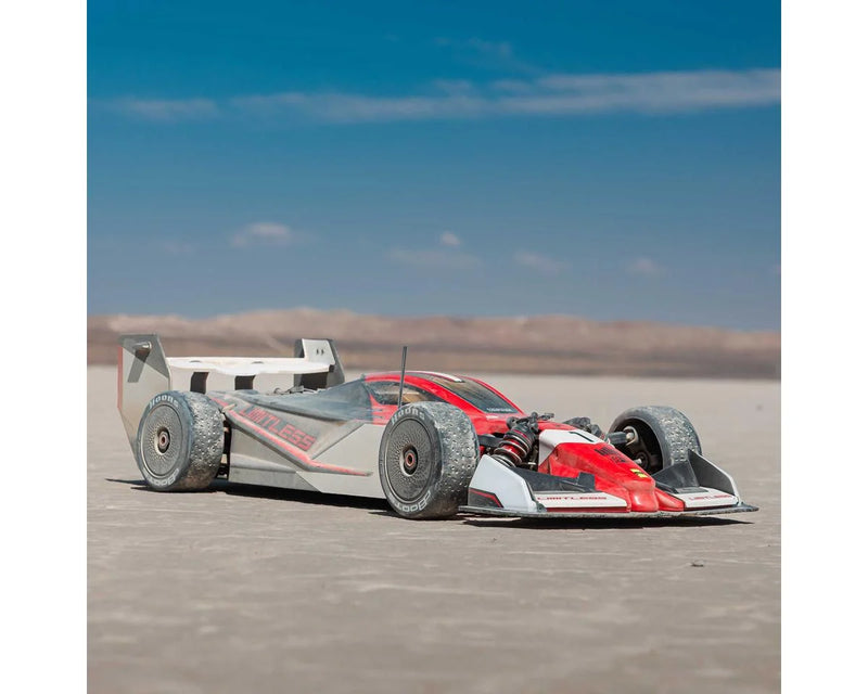 This ready-to-run version of the LIMITLESS includes a low-drag body that's factory-finished in a choice of color options. Wing trim lines can be used to reduce downforce. The full-width front splitter improves traction and handling, and a large rear diffuser reduces turbulence and drag. Use the high-speed pinion with the supplied optional center spool and trimmed Aero package for incredible 120+ mph speed runs!