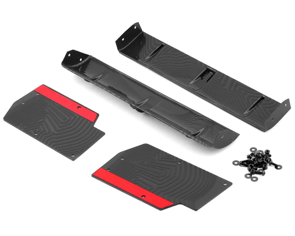 • Includes high and low downforce wings, wing endplates and wing attachment fasteners