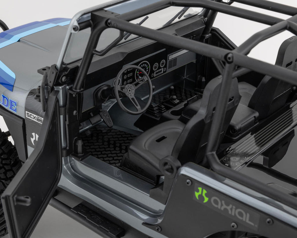 The Axial SCX10 III Jeep CJ-7 is a remarkable R/C rock crawler that pays homage to the iconic civilian Jeep introduced in 1976. Boasting an officially licensed Jeep CJ-7 body made of durable polycarbonate, this crawler comes complete with Gen-Right bumpers, body armor, and a fully detailed interior, including an opening center console. The doors of the scale body are functional, allowing for an immersive experience where enthusiasts can open or even remove them. The attention to detail extends to additional scale features, such as a functional center console, removable coffee tumbler and soda can, transfer case twin stick shifters, automatic transmission shifter, bucket seats with optional seatbelt harness slots, folding side view mirrors, and more. This level of scale realism sets the SCX10 III Jeep CJ-7 apart, making it a must-have for collectors and rock crawling enthusiasts.