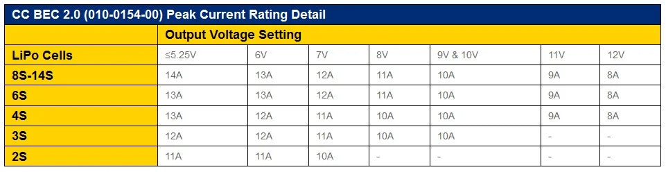 Note: CC BEC 2.0 should never be operated in series or parallel with another BEC or backup receiver pack connected to the RX/Servo side of the circuit.