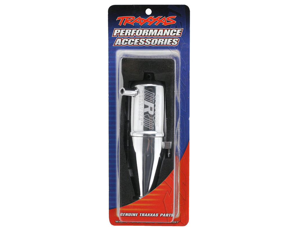 Traxxas "High RPM" Resonator Tuned Pipe. Traxxas Resonator aluminum tuned pipes are precision-engineered on the dyno to increase the power output of TRX Racing Engines. The Traxxas engineering team knows TRX Racing Engines better than anyone, so Resonator pipes deliver proven results that drivers can see, hear, and feel every time they pull the trigger. Resonator pipes feature R.O.A.R. legal stingers and come in single and dual-chamber versions. It’s smooth power delivery is perfect for the race track. All Resonator pipes are fully polished to a beautiful mirror-chrome finish with a laser etched logo. Mounting hardware is included.