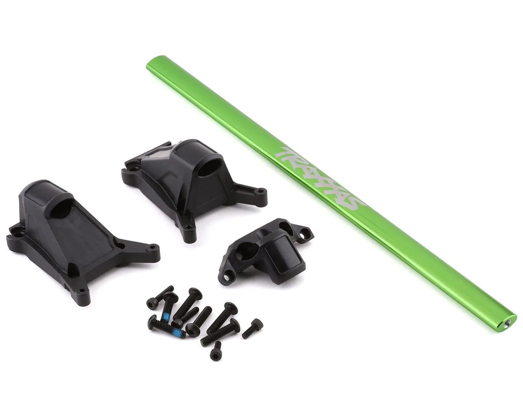 This is an optional Traxxas Rustler 4x4 and Slash 4x4 LCG Chassis Green Brace Kit. This heavy-duty chassis brace fits Slash 4X4 models equipped with the low-CG chassis and all Rustler 4X4 models. Made from thick extruded aluminum, the oval-shaped brace increases torsional rigidity and dramatically strengthens the chassis to reduce flex. Brilliantly anodized in high-impact colors, the HD chassis brace provides structural reinforcement for high loads and hard landings. Whether you’re sending it at the skate park, or launching from a ramp, the heavy-duty chassis brace is built for extreme punishment.