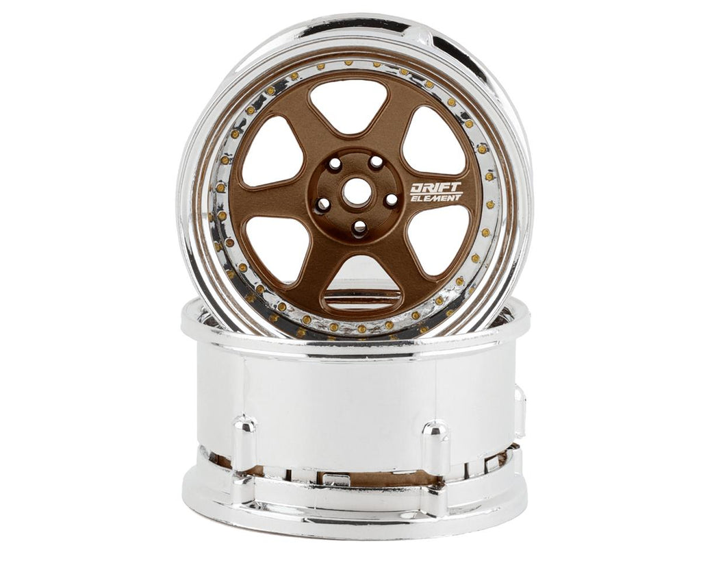 The DS Racing Drift Element 6 Spoke Drift Wheels are a great option to add that custom look to your RC drift car. These wheels feature an adjustable offset allowing you to have a factory, tucked or even stanced look. Each wheel is broken down into five pieces: Inner wheel, Outer wheel, Wheel Face, Inner rivet ring and Outer rivet ring. DS Racing has made these components available in multiple color and style options allowing you to select the wheels that will best match your build.