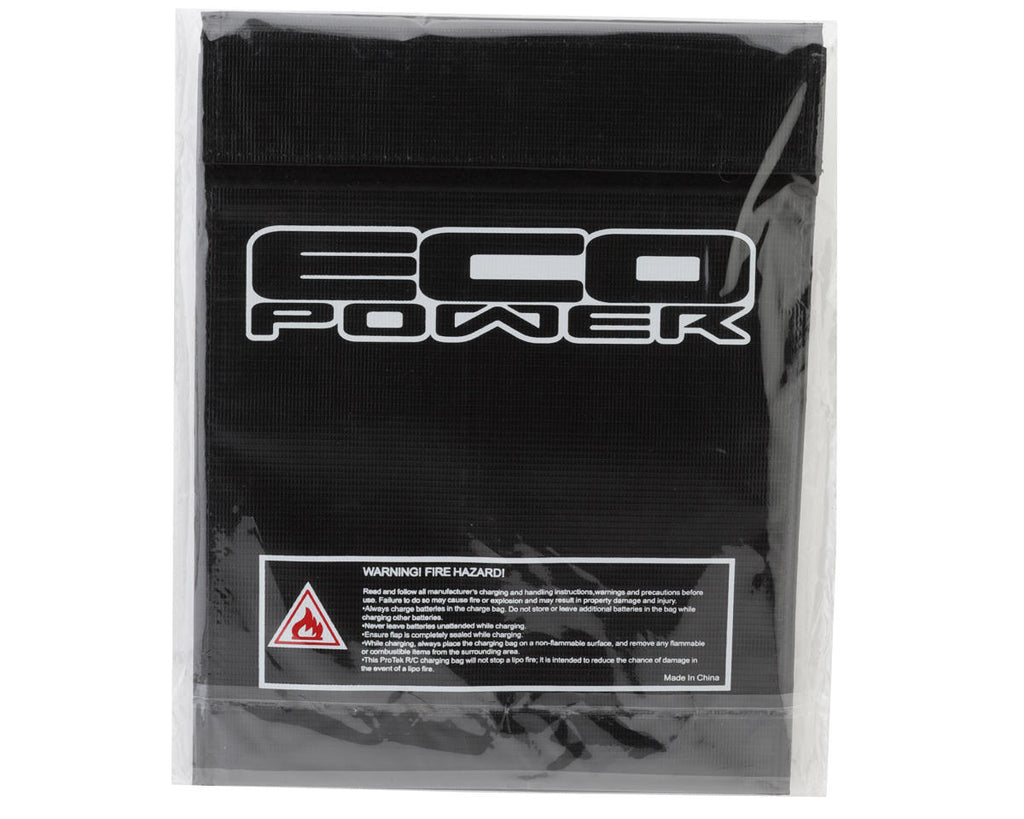- This EcoPower lithium charging bag is intended to reduce the chance of damage in the event of a LiPo fire