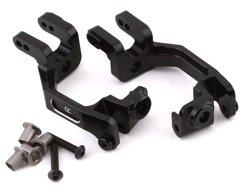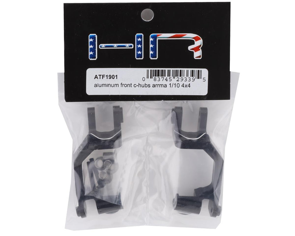 Hot Racing Arrma 4x4 Aluminum Front C-Hubs are optional upgrades for Arrma 4x4 vehicles. These stylish and durable parts are CNC machined from light weight aluminum, given a sleek black coating and finished with chamfered edges and etched HR logo.