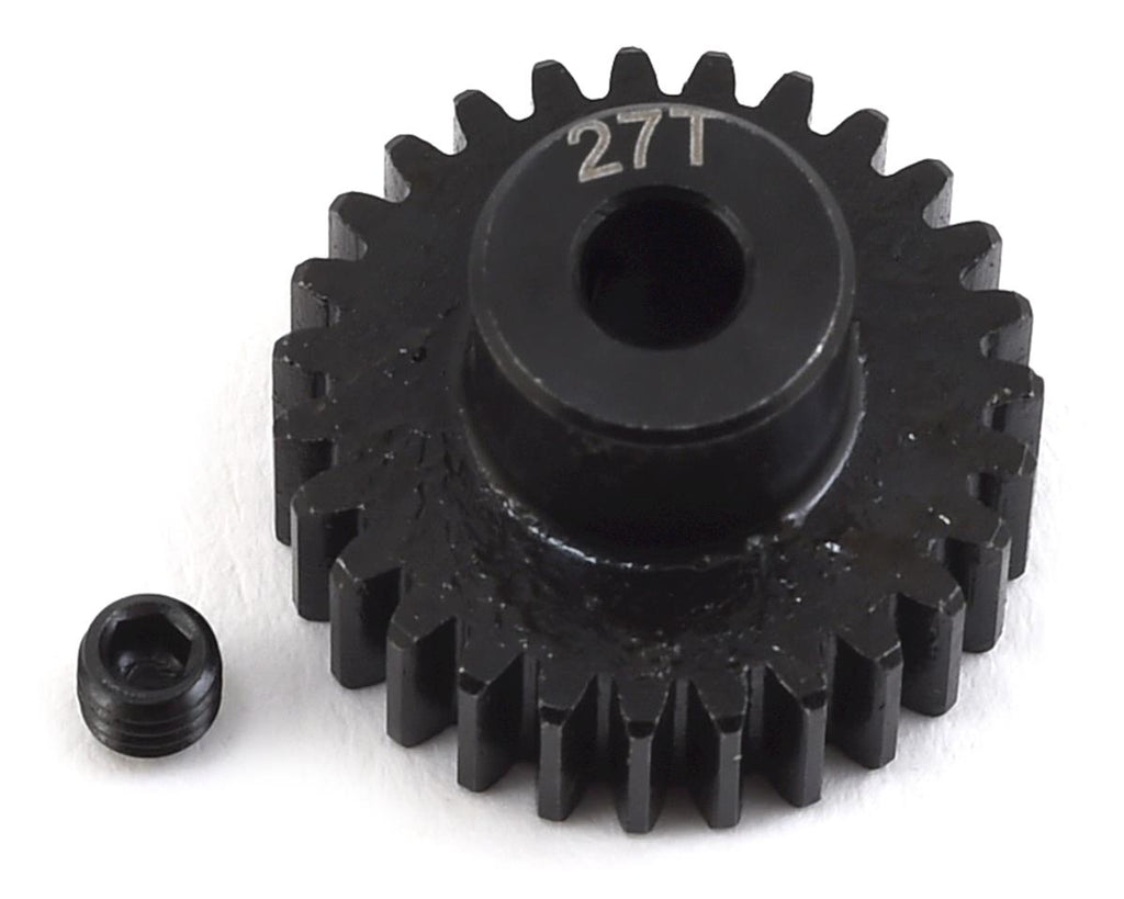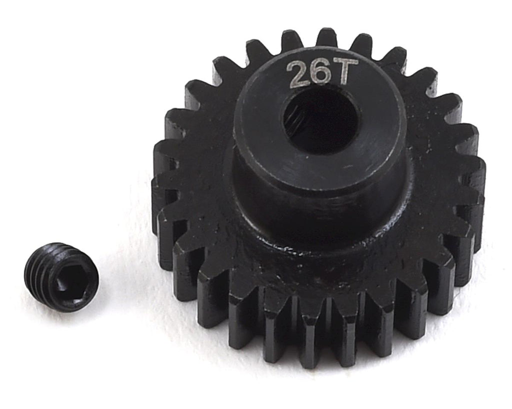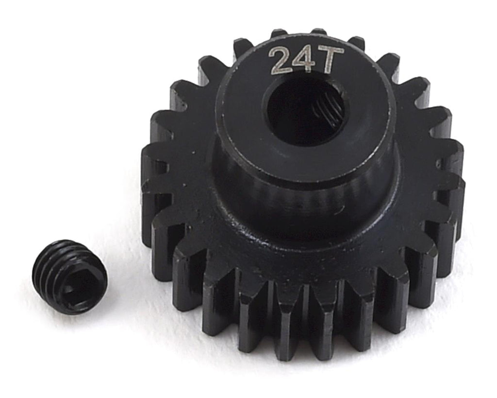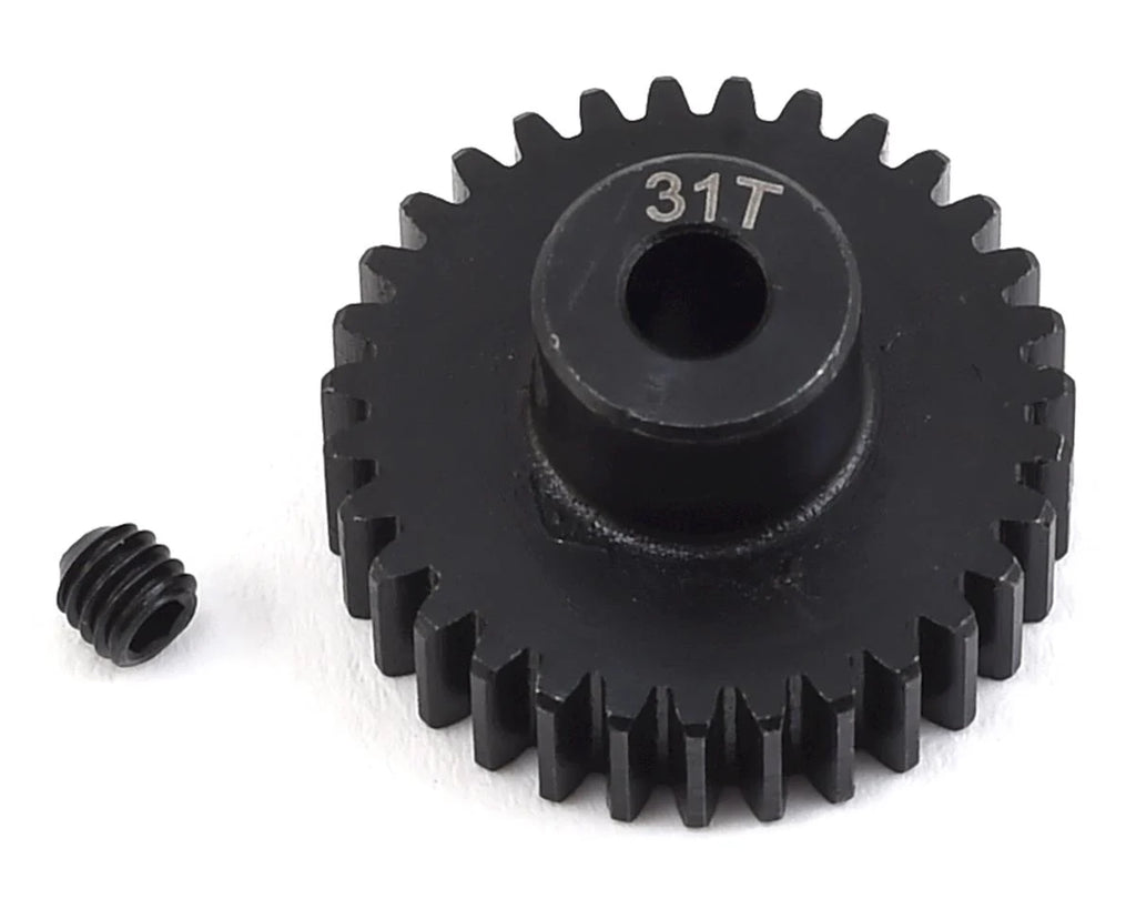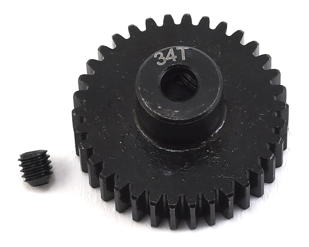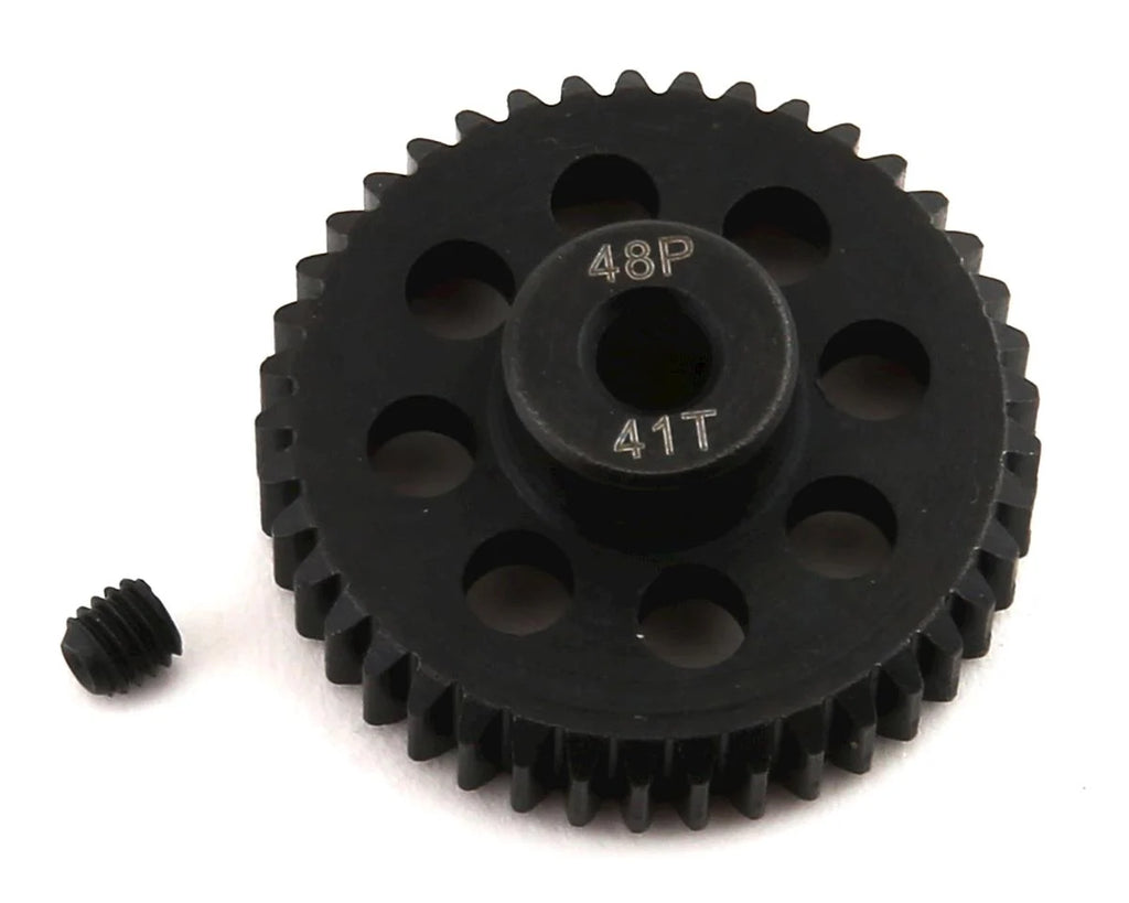 ProTek R/C Lightweight Steel 48P Pinion Gears are an affordable pinion gear option that doesn't skimp on quality. CNC machined from hardened steel material, these precision cut gears are durable and are perfect for any 48 pitch application. Plus, the 18 tooth and larger gears have been machined on the back side to remove as much weight as possible, without sacrificing strength. These gears are available in 12-41 tooth variants, and the tooth count is engraved on the gear for easy identification. Each gear includes a setscrew to make installation easy.
