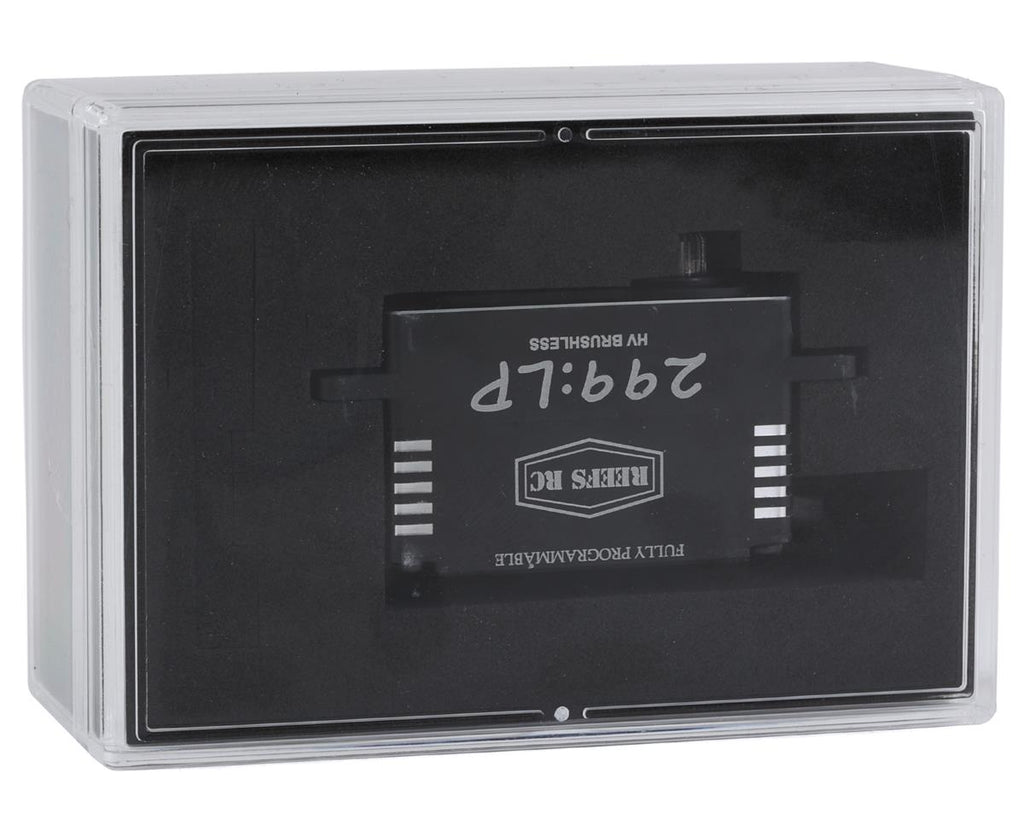 Reefs RC 299LP High Torque/Speed Brushless Low Profile Servo. This low profile servo features all steel gears and a CNC machined aluminum case.
