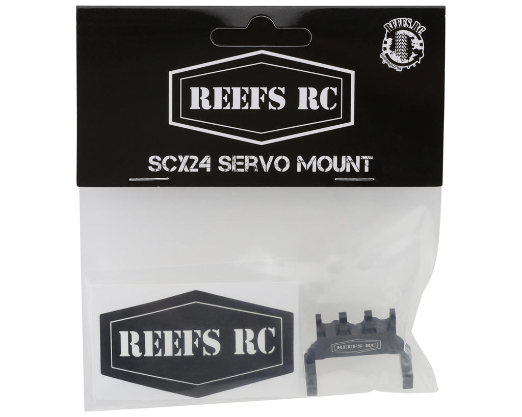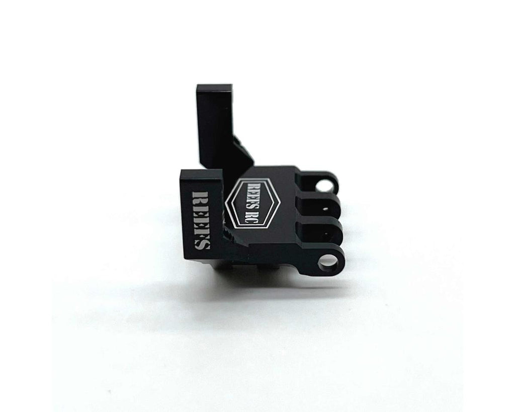 This is The Reefs RC Axial SCX24 Aluminum Servo Mount. Designed to fit the 99Micro and the 179Micro servos on the SCX24, this optional servo mount is constructed from high quality, lightweight aluminum to increase durability, and enhance steering precision and overall performance by eliminating flex found in stock composite servo mount!