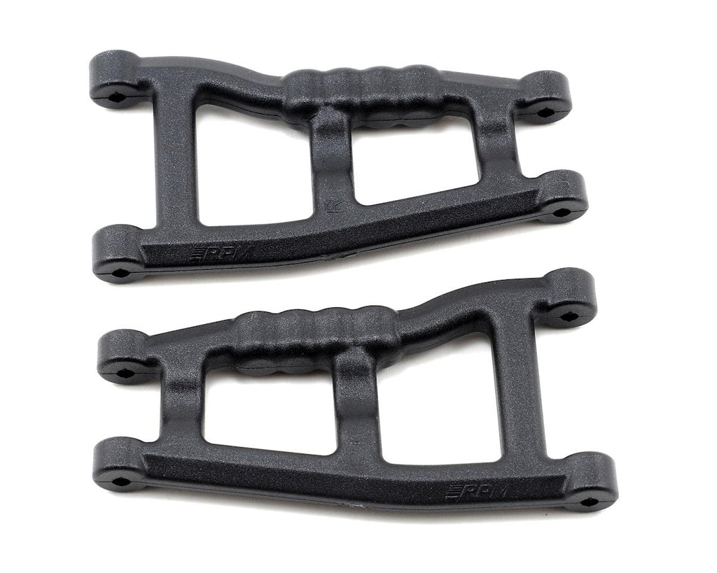 RPM Slash rear A-arms are sold in pairs. They are molded in RPM's nearly indestructible blend of nylons and are available in red, green, black or blue. These A-arms are backed by RPM's limited lifetime warranty against breakage as well for confidence-inspiring durability and performance.