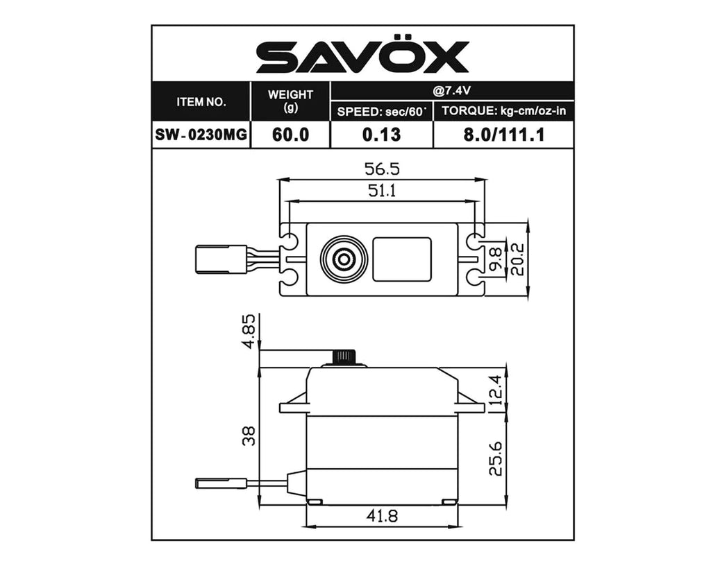Savox SW0230MGP Waterproof Metal Gear Digital Servo W/Soft Start Slash Summit